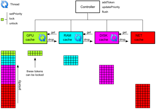 A quick example might better explain the concept; see a more detailed example for source code and in depth comments. we want to implement a priority cache for our database of 10000 images. We will use 2 levels of caching, RAM and GPU while the images will be stored on disk.